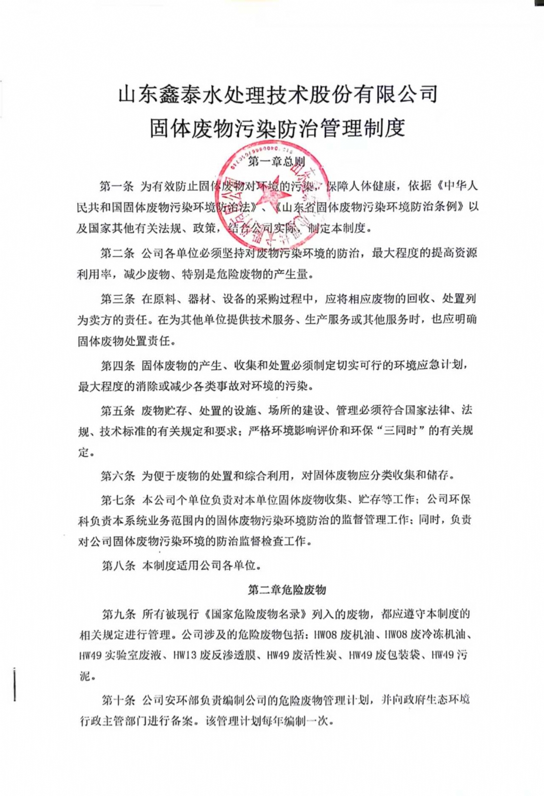 山東鑫泰水處理技術(shù)股份有限公司“無廢工廠”建設(shè)工作實(shí)施方案